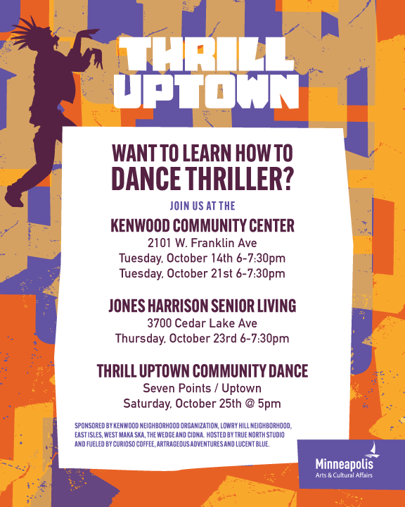 Curioso Coffee, ARTrageous Adventure, Lucent Blue Events and the Kenwood Neighborhood Organization —along with the support of the Uptown neighborhood organizations—are excited to present the 16th annual Thrill Kenwood, now reimagined and relocated as THRILL UPTOWN at Seven Points! This high-energy event brings the community together for a synchronized global dance to Michael Jackson’s Thriller, while supporting local businesses and collecting food donations for Joyce Food Shelf.