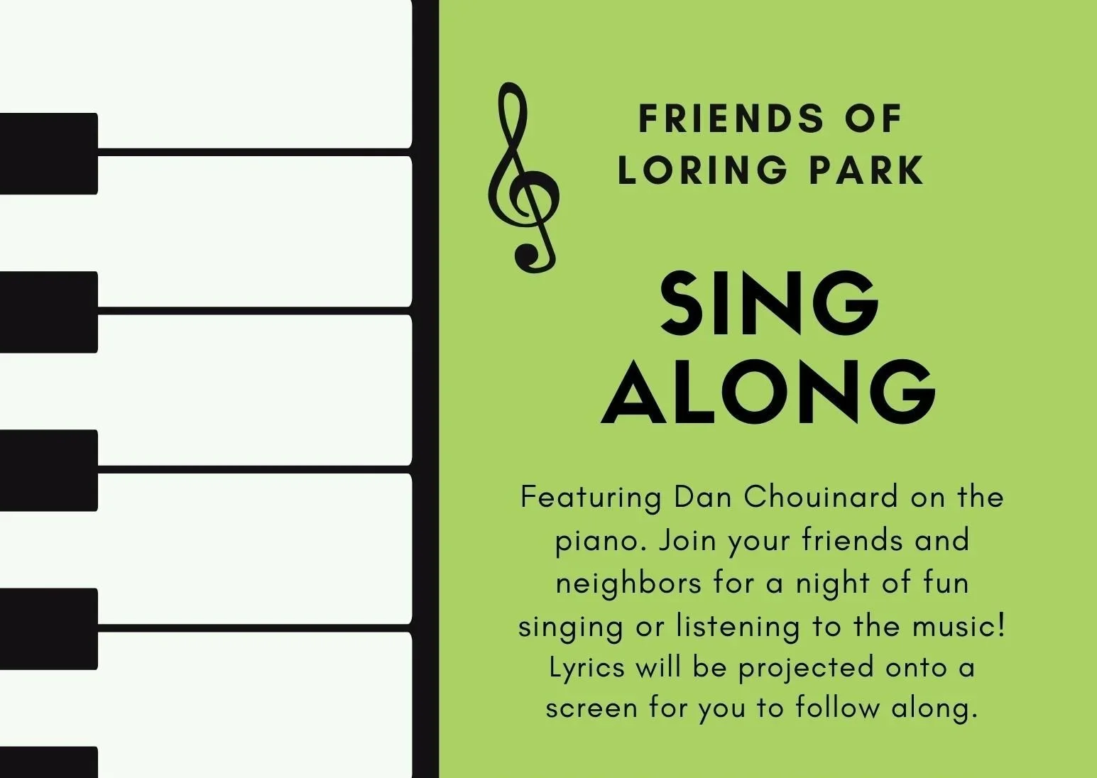 Join your friends and neighbors for this wonderful event. Even if you don't sing, you're guaranteed to have a delightful evening. Songs are chosen ahead of time, with music and refreshments provided. Featuring Dan Chouinard on the piano. Celebrate the season by joining friends and neighbors for a night of fun singing or listening to the music! Lyrics are projected onto a screen.